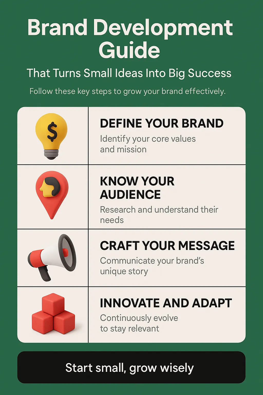 When you treat brand development as an ongoing practice—not a one-time project—you give your small idea the structure, trust, and recognition it needs to become something much bigger.